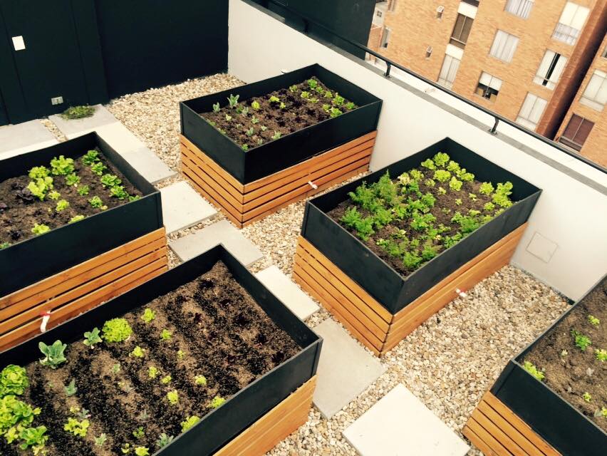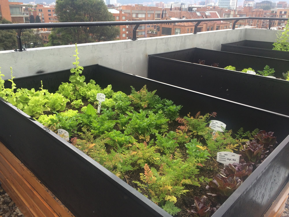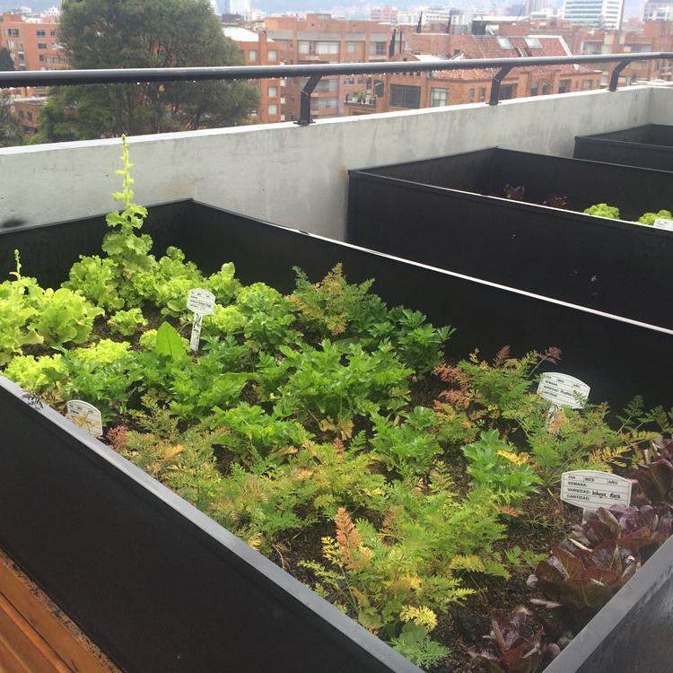 VITAL ARQUITECTURA genera infraestructura de impacto social de primera mano, tal como estos dos proyectos, tanto en el chicó con la aplicación de huertos urbanos para los residentes de una comunidad, y un muro verde para un jardín infantil de niños del ICBF en Soacha.